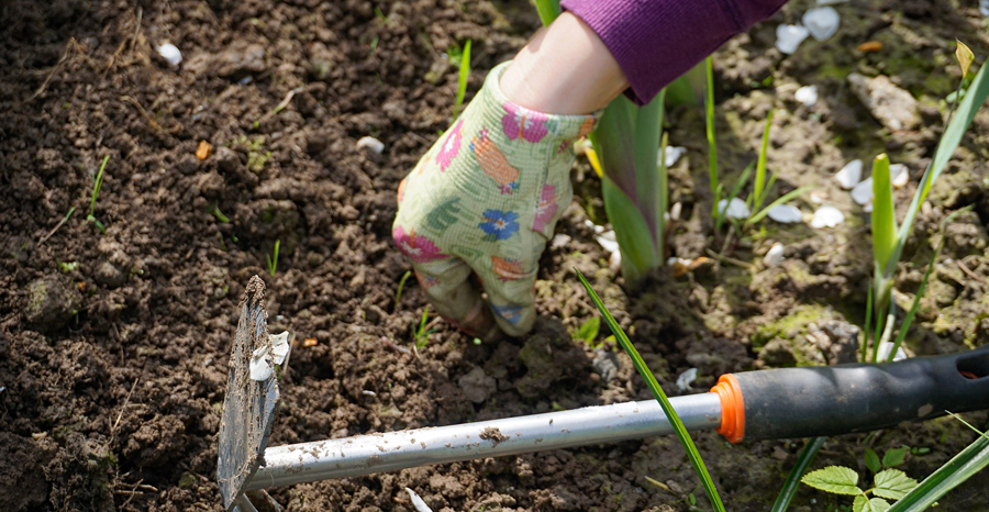 - Loosen and turn the soil in the new planting site with a gardening fork.