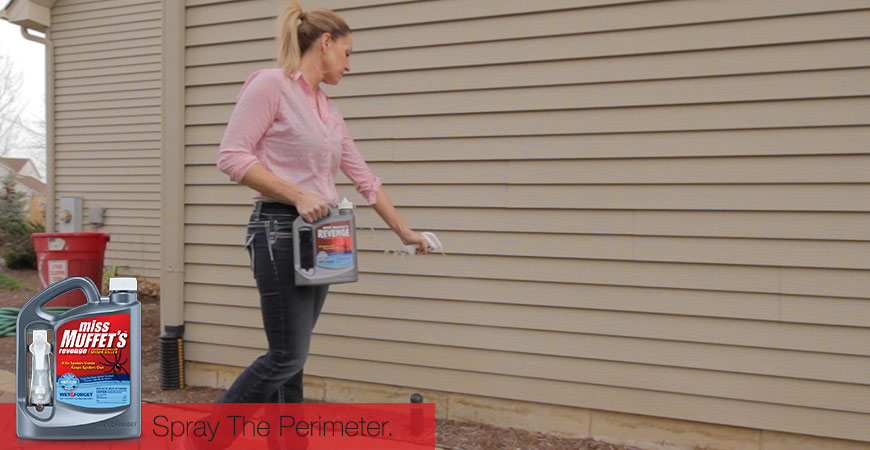 Over time, the rain outside will eventually wash away the lasting effects of Miss Muffet’s Revenge in areas that are exposed to the rain. At the first sign of new spiders, you’ll want to reapply Miss Muffet’s Revenge to once again prevent spiders from being in your home.